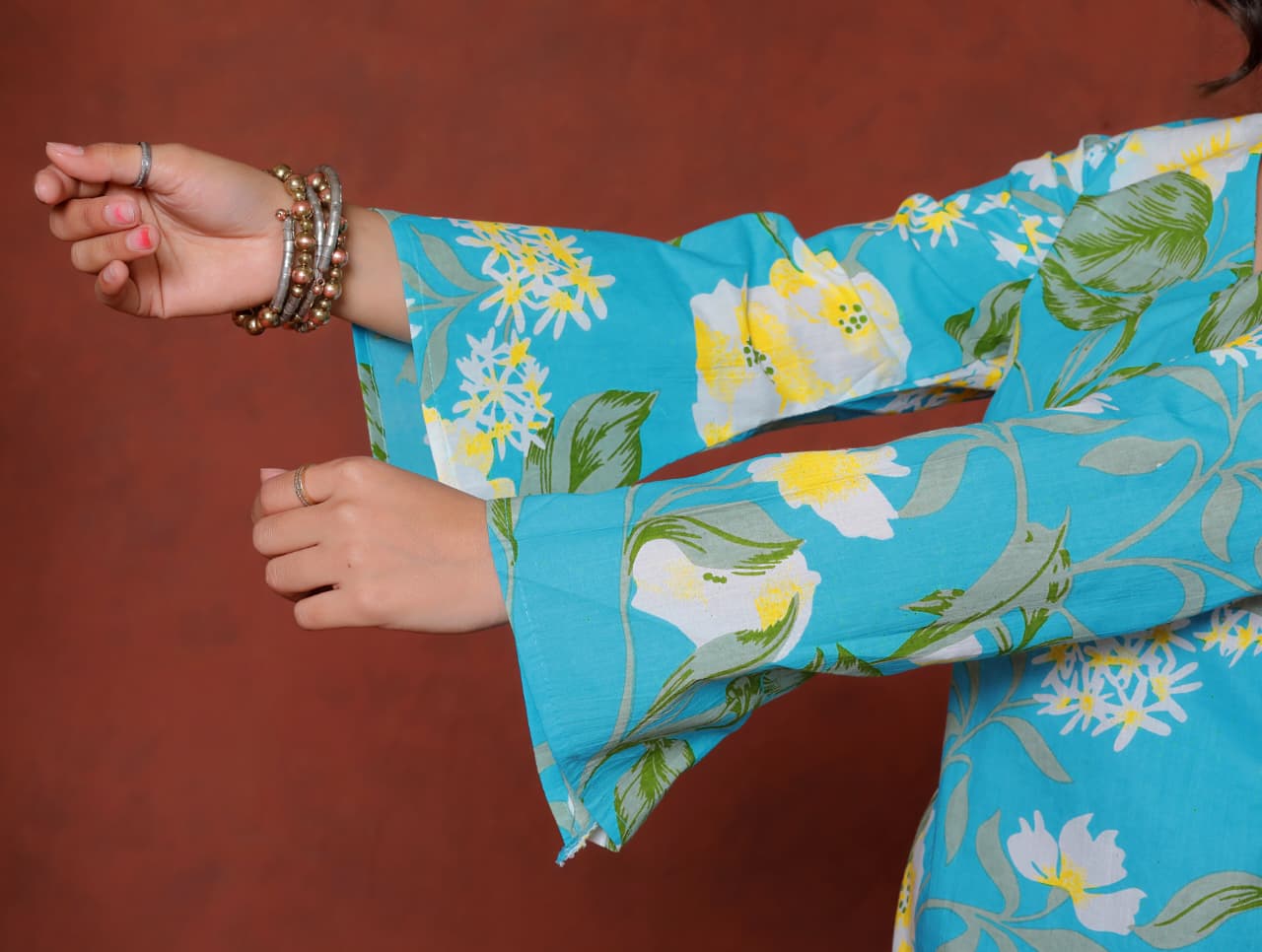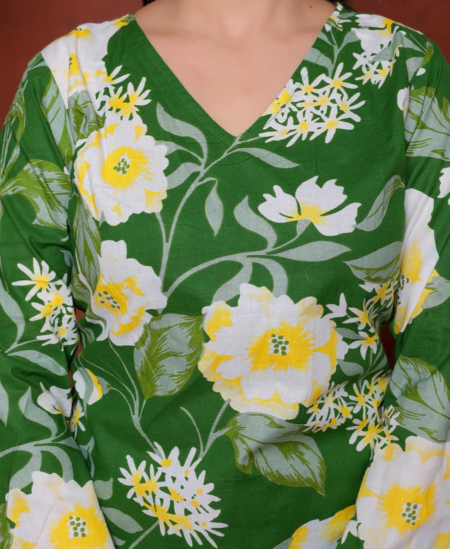 Elevate your ethnic wardrobe with this chic and vibrant fuchsia pink blue skay green  kurti. Featuring a striking white lily print, this piece is designed for the modern woman who loves a mix of classic charm and edgy details.