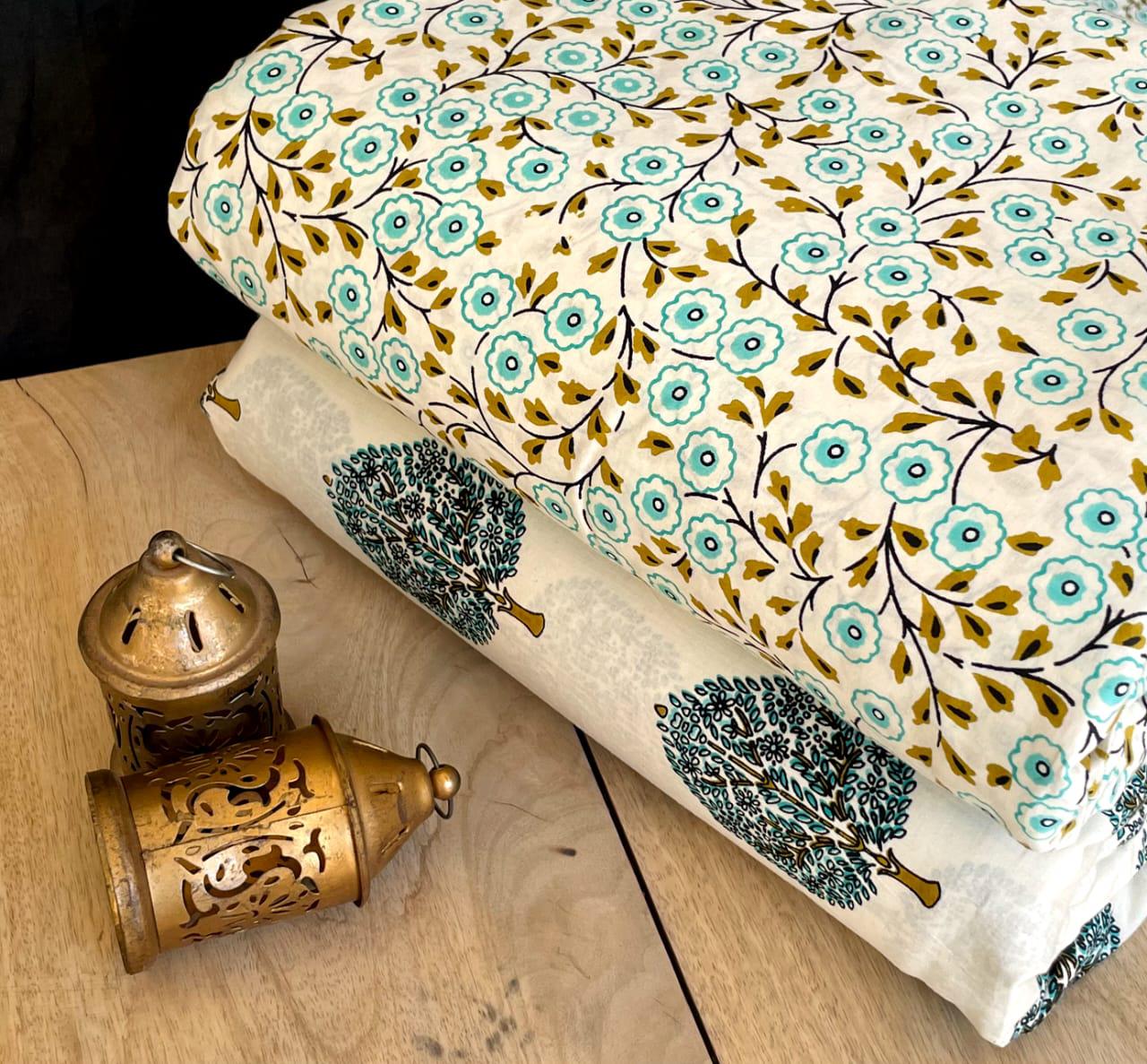 Hand Block Fabrics are perfect for creating unique fabrics suitable for hand-made quilting, sewing and apparel. These well-padded fabric pieces are made from 100% cotton.