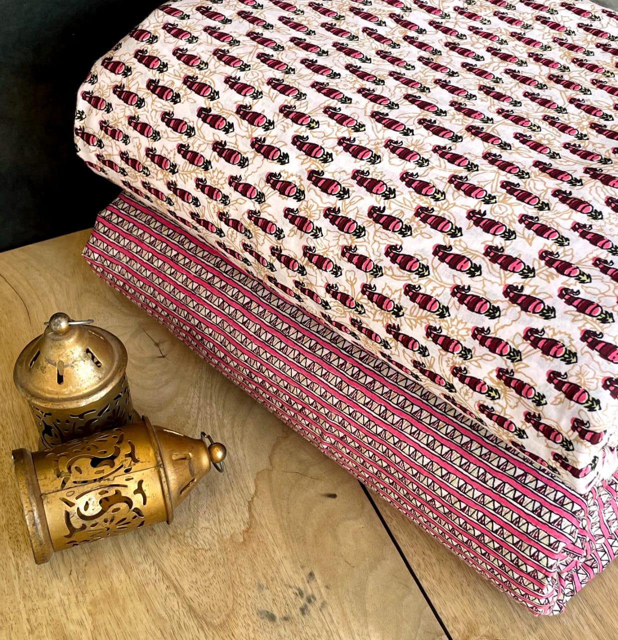Hand Block Fabrics are perfect for creating unique fabrics suitable for hand-made quilting, sewing and apparel. These well-padded fabric pieces are made from 100% cotton.