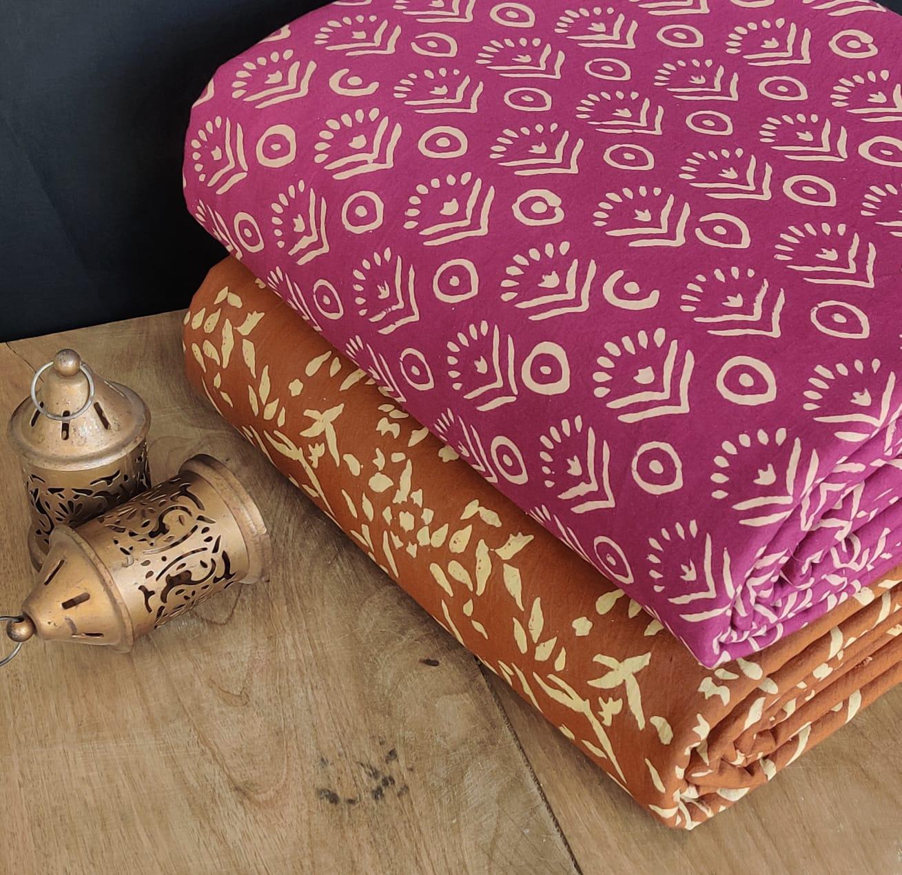 Hand Block Fabrics are perfect for creating unique fabrics suitable for hand-made quilting, sewing and apparel. These well-padded fabric pieces are made from 100% cotton.