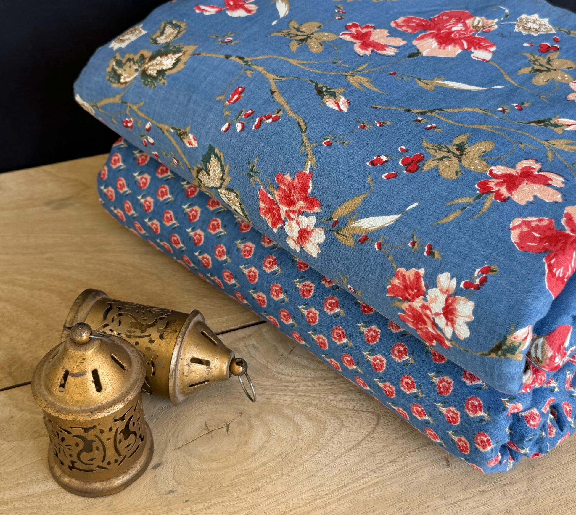 Hand Block Fabrics are perfect for creating unique fabrics suitable for hand-made quilting, sewing and apparel. These well-padded fabric pieces are made from 100% cotton.