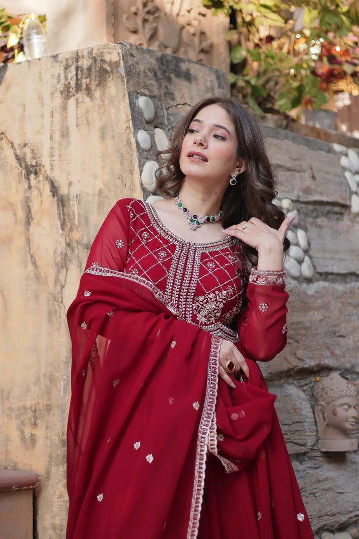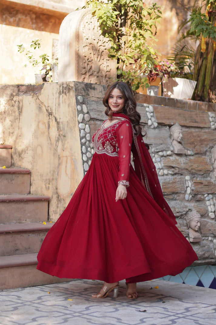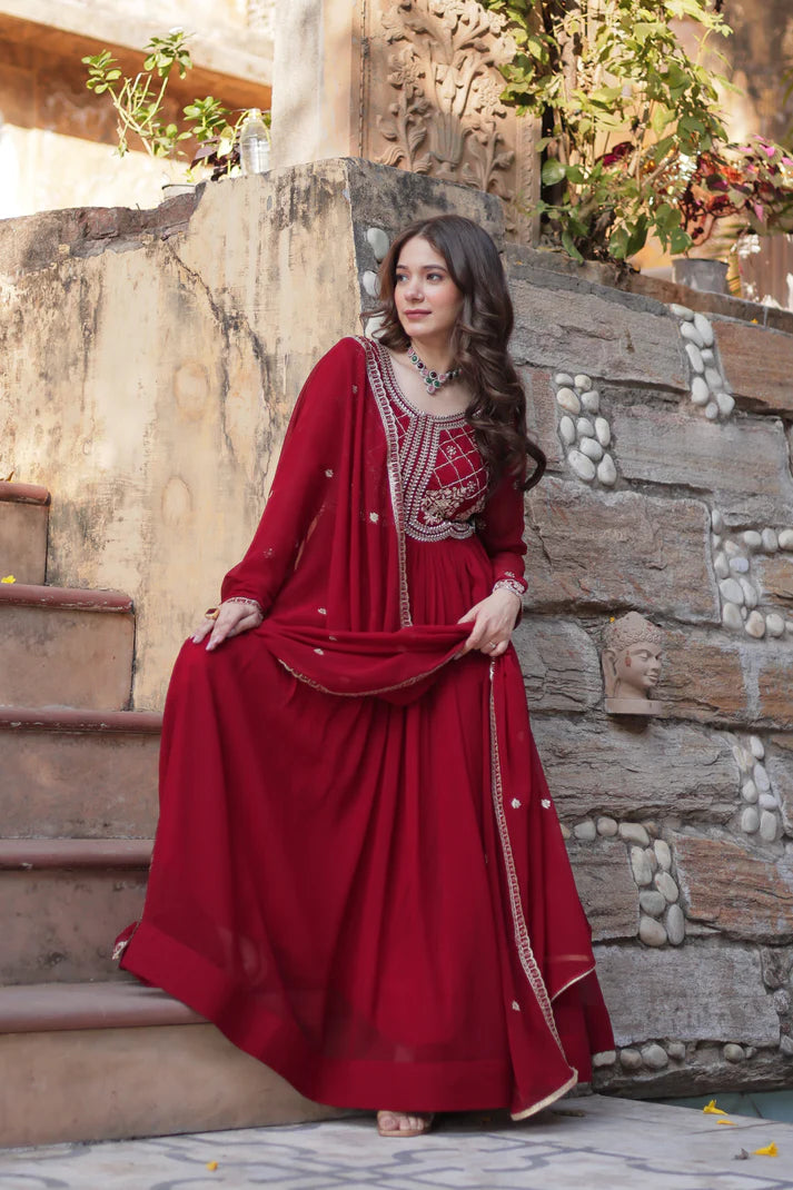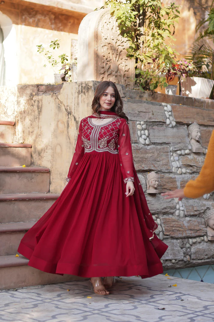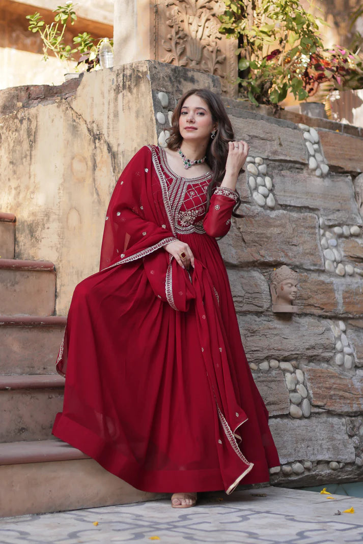 FAUX BLOOMING SEQUANCE EMBROIDERED GOWN WITH DUPATTA(WD80)