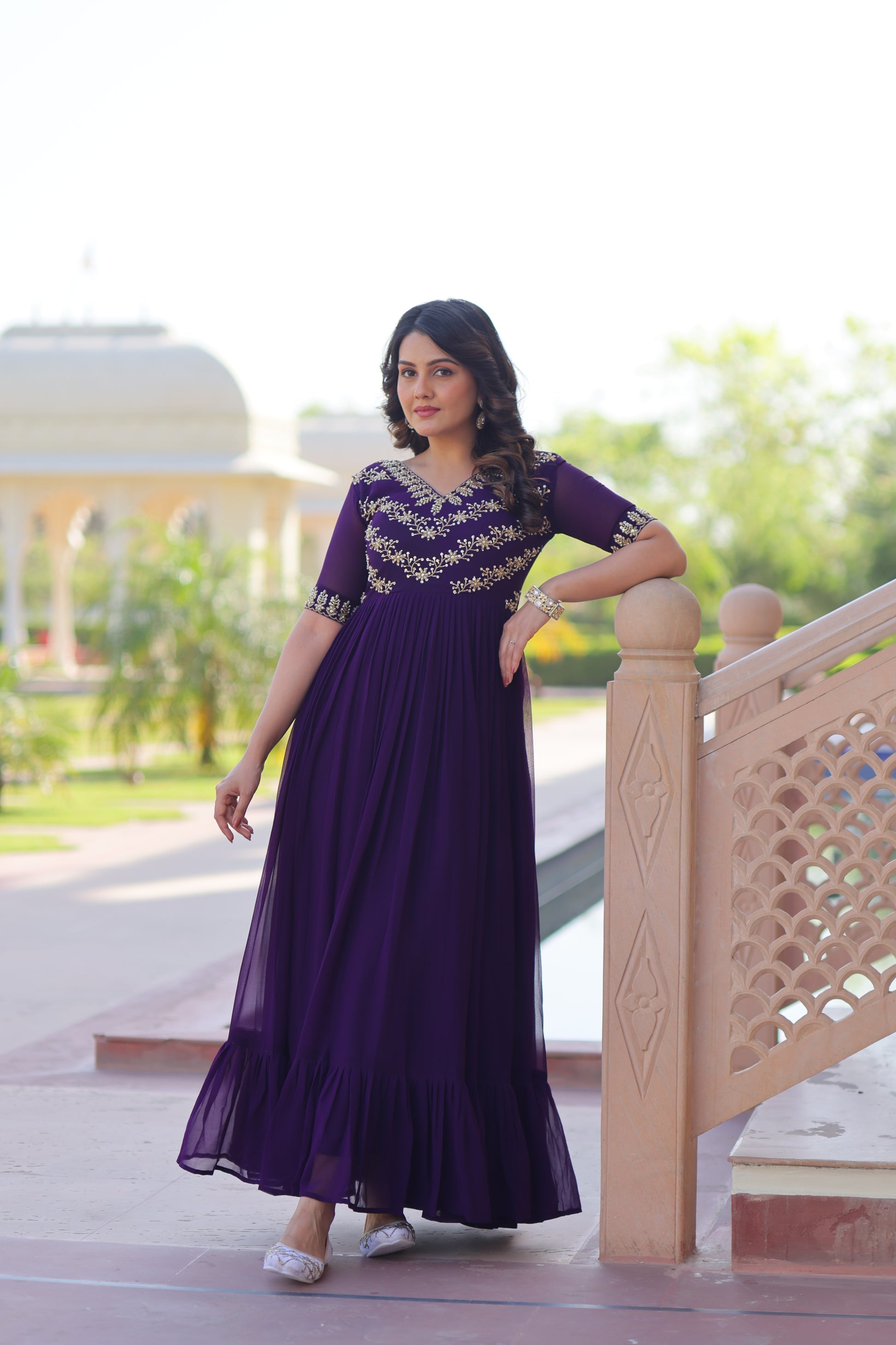 FESTIVAL SPECIAL FAUX BLOOMING BEADS EMBROIDERED GOWNFESTIVAL SPECIAL FAUX BLOOMING BEADS EMBROIDERED GOWN(WDN56)