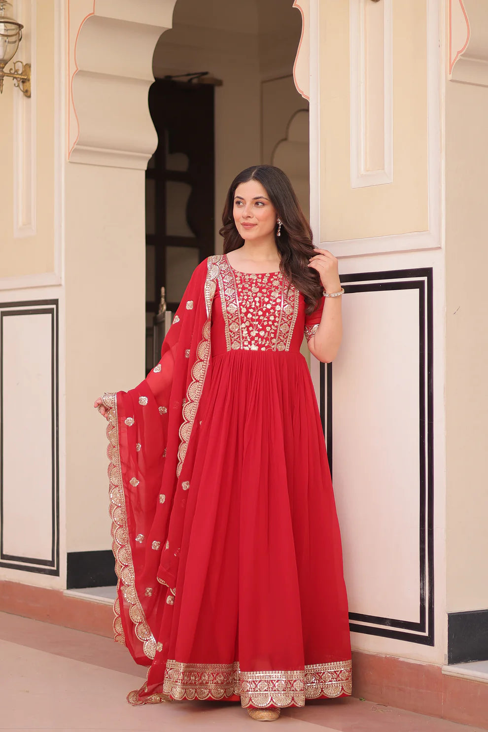 FESTIVE SPECIAL FAUX BLOOMING EMBROIDERED GOWN WITH DUPATTA(WD179)