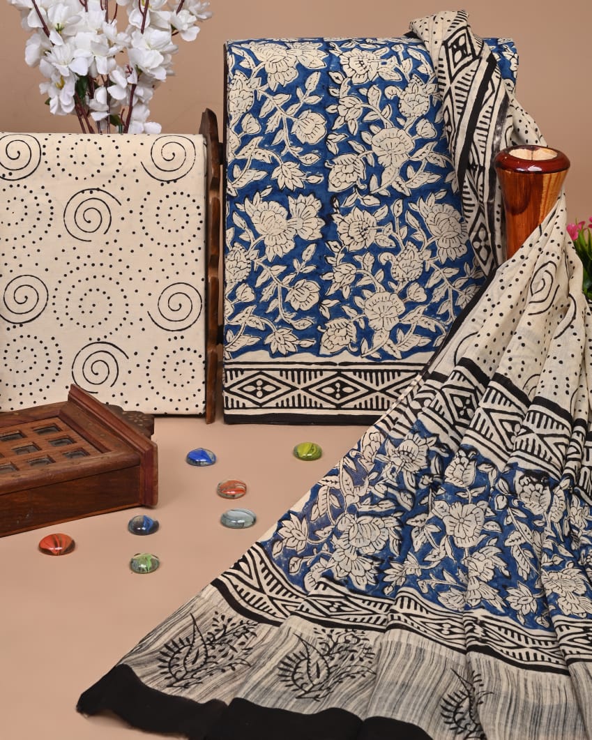 HAND BLOCK PRINT COTTON SUIT SET WITH MULMUL DUPATTA