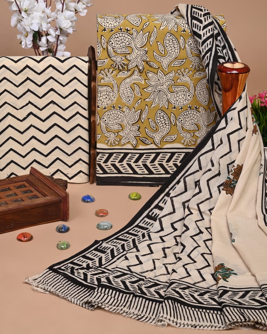 HAND BLOCK PRINT COTTON SUIT SET WITH MULMUL DUPATTA