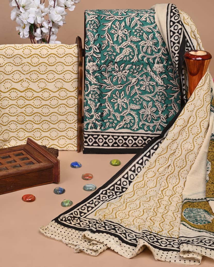 HAND BLOCK PRINT COTTON SUIT SET WITH MULMUL DUPATTA