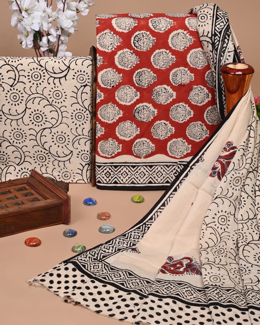 HAND BLOCK PRINT COTTON SUIT SET WITH MULMUL DUPATTA