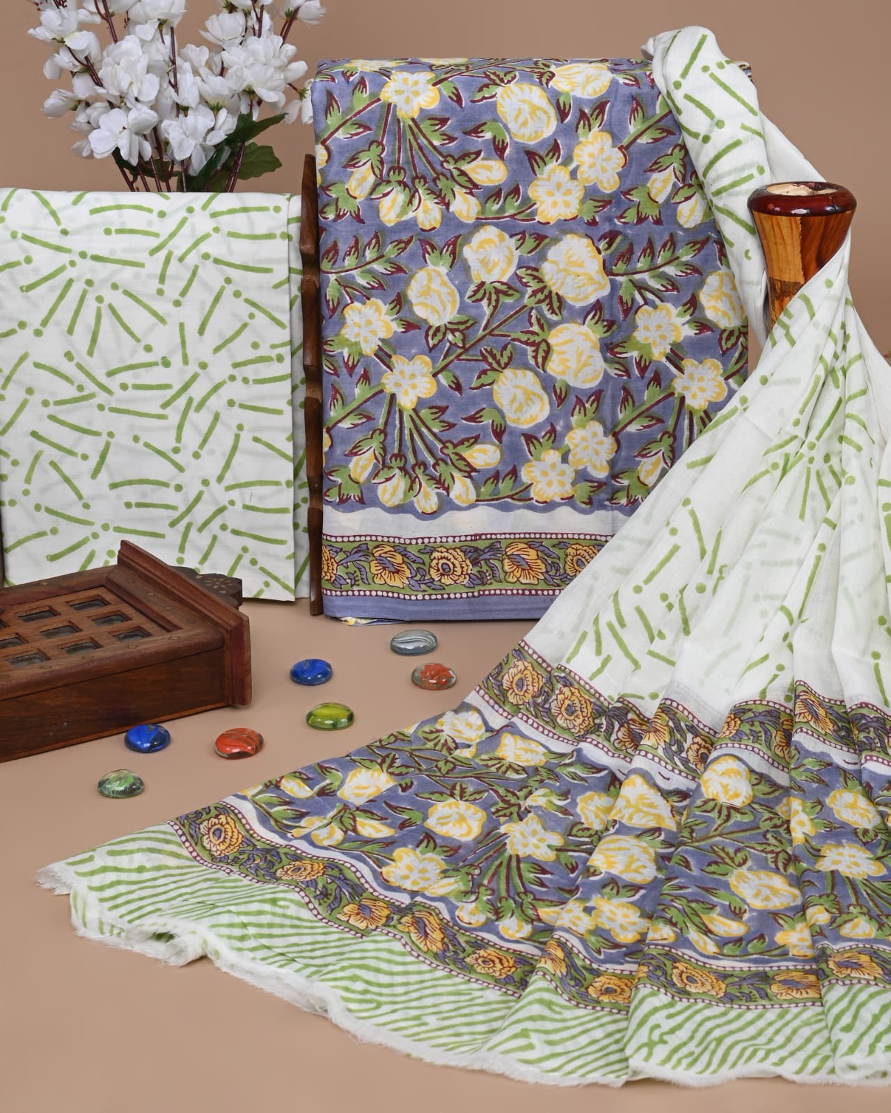 HAND BLOCK PRINT COTTON SUIT SET WITH MULMUL DUPATTA