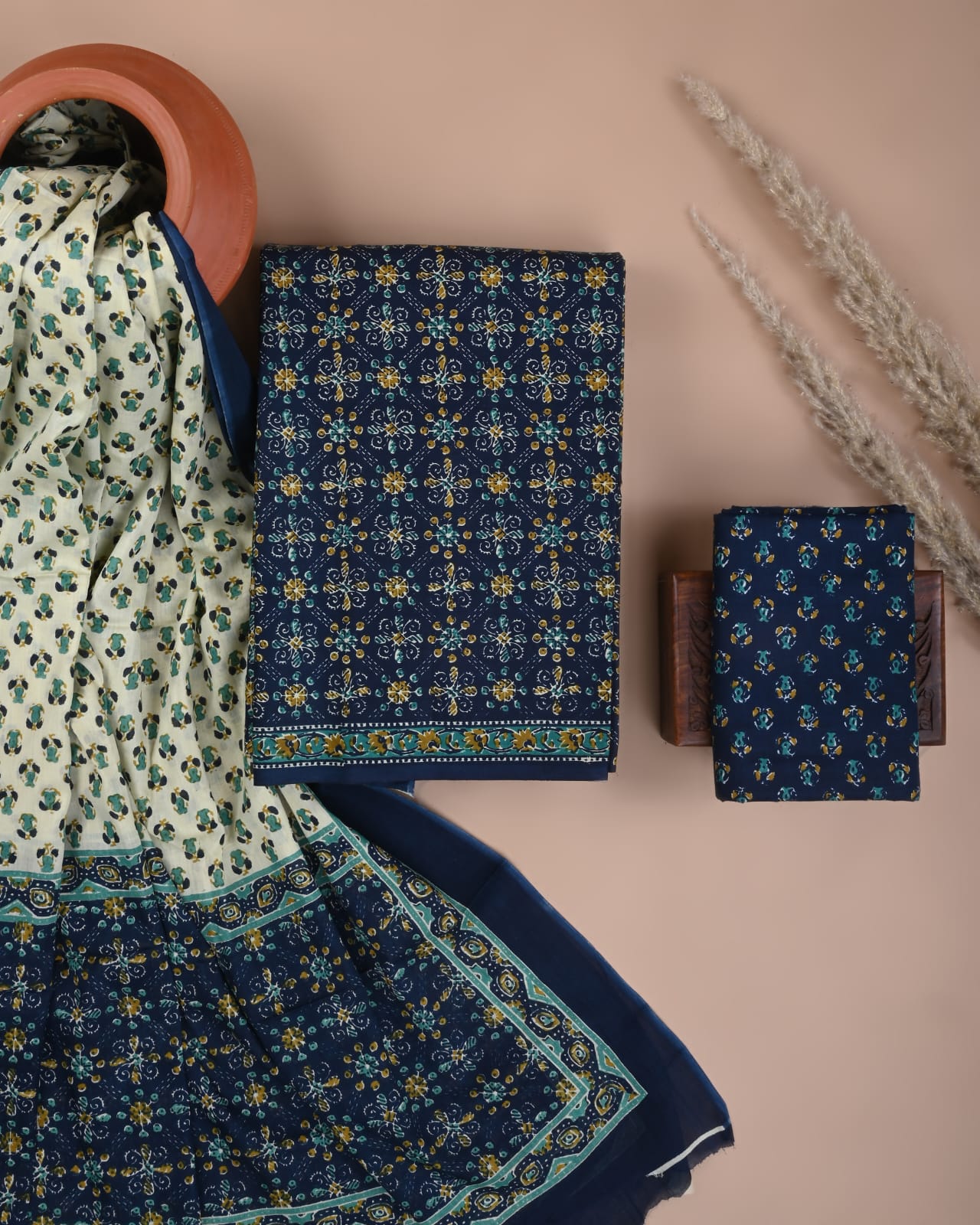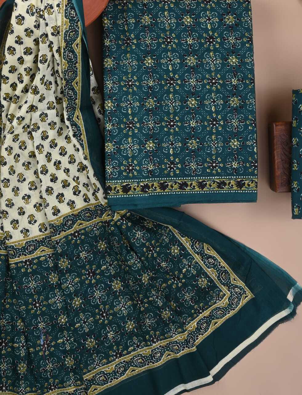 Exclusive Hand block printed cotton suit with cotton dupatta