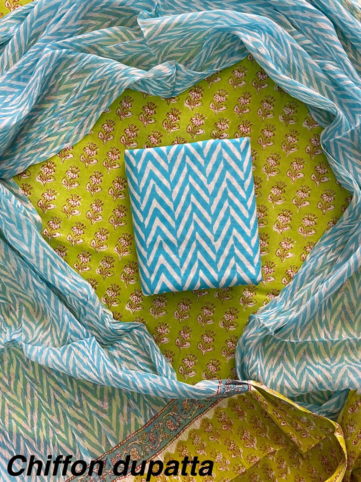 New Premium Hand Block Print Cotton Suit Set with Chiffon Dupatta(WACFCOTMU59)