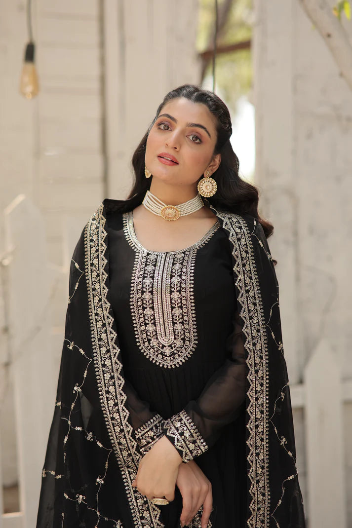FABRICS & WORK :- Faux Blooming Gown with Rich Sequins Embroidered work