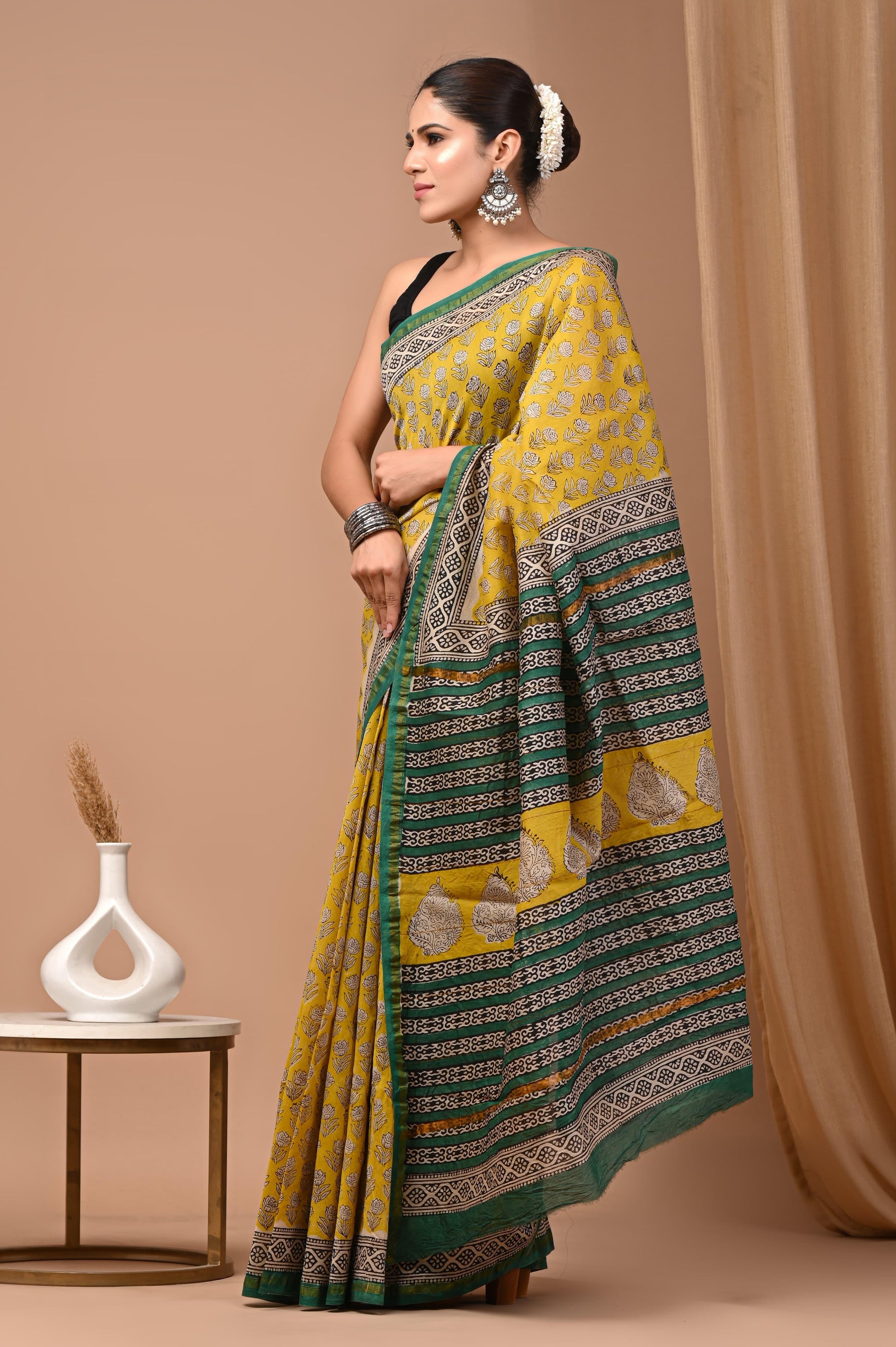 Premium Hand Block Printed Chanderi Silk Saree 33