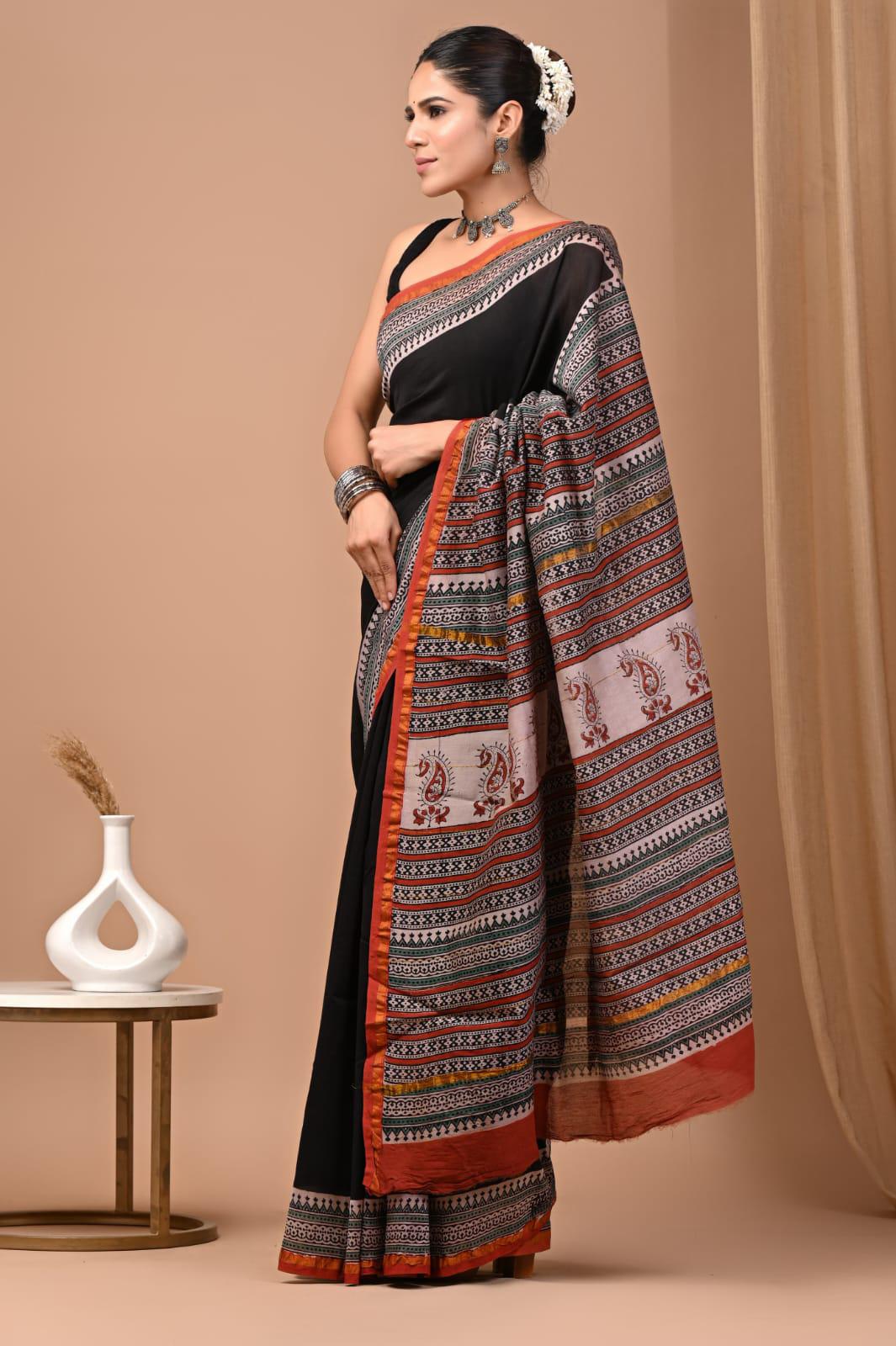 Premium Hand Block Printed Chanderi Silk Saree 62