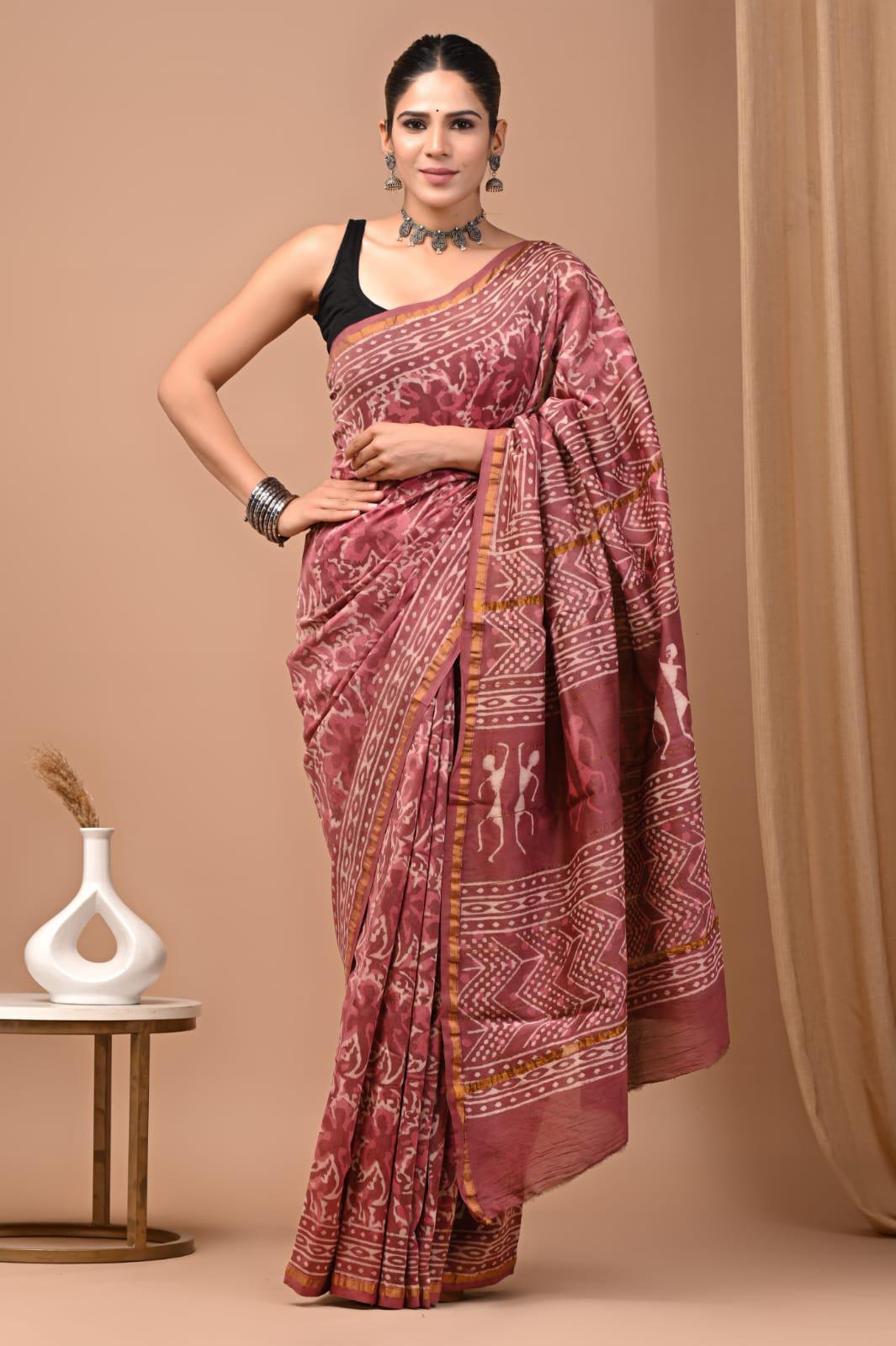 Fabric: Hand Dyed Chanderi and Hand Block Printed Saree.
