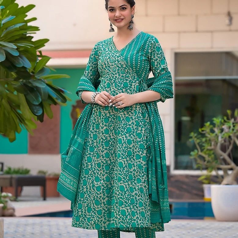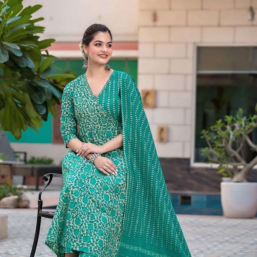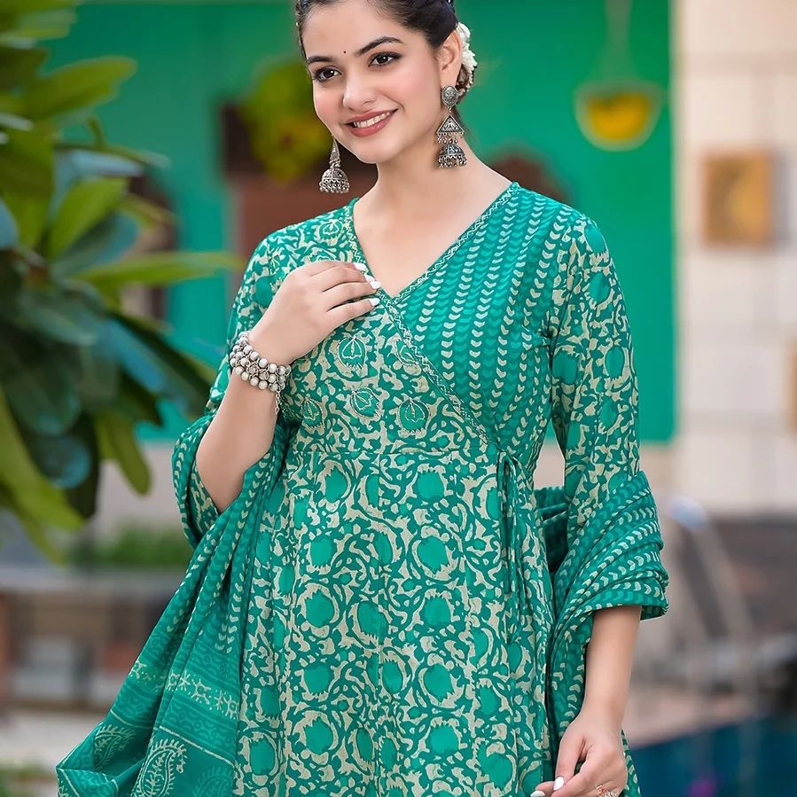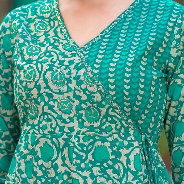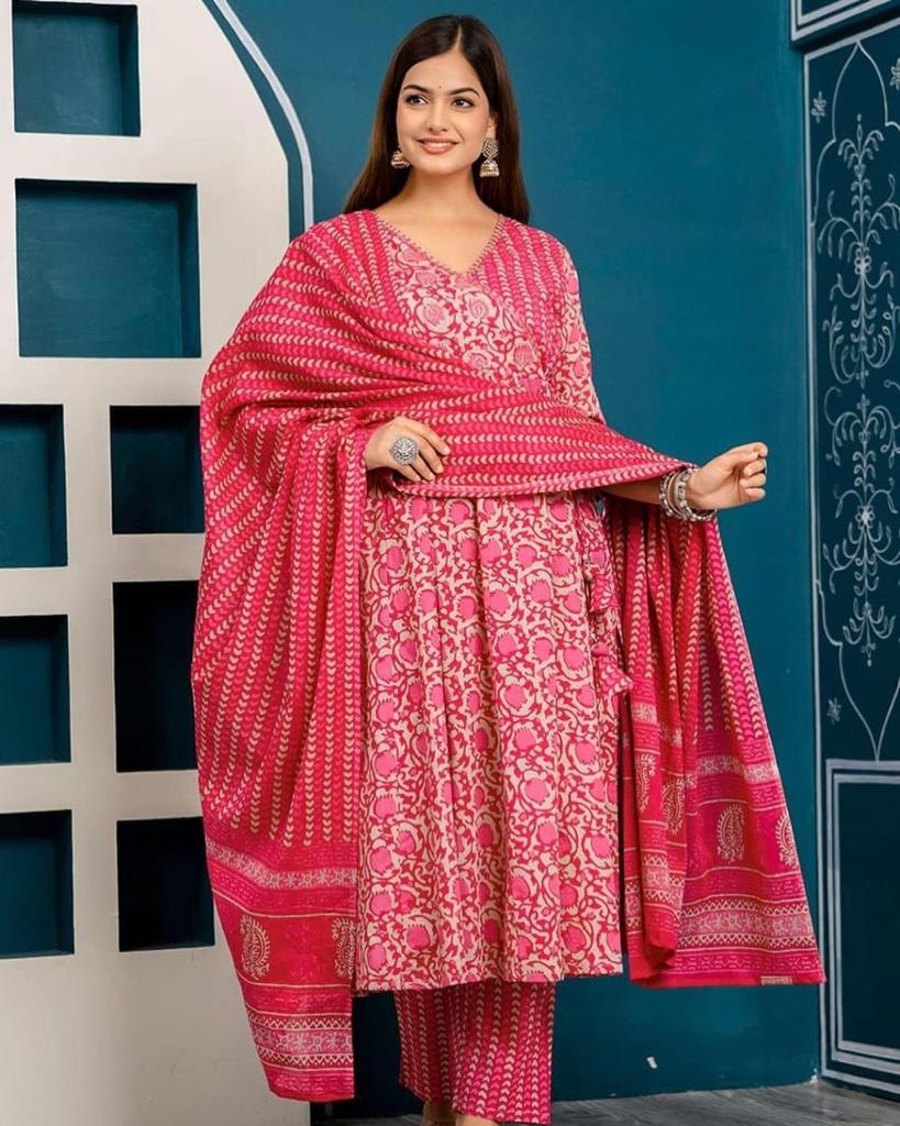 _New Angrakha kurta set with new style in saganeri block print_(SWRD27)