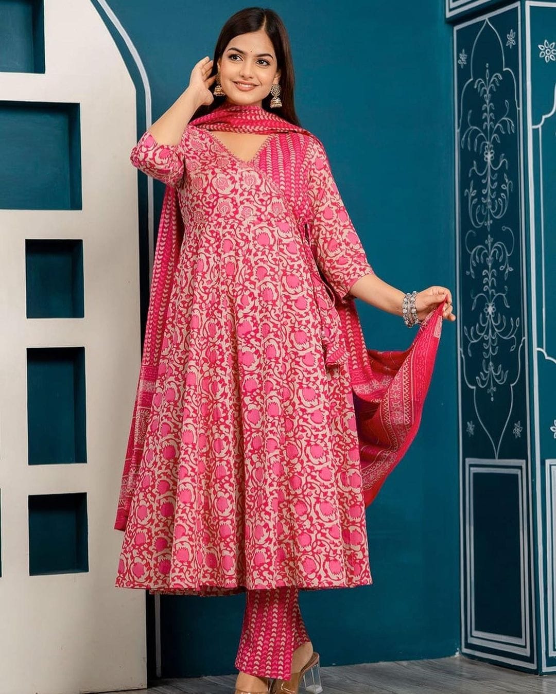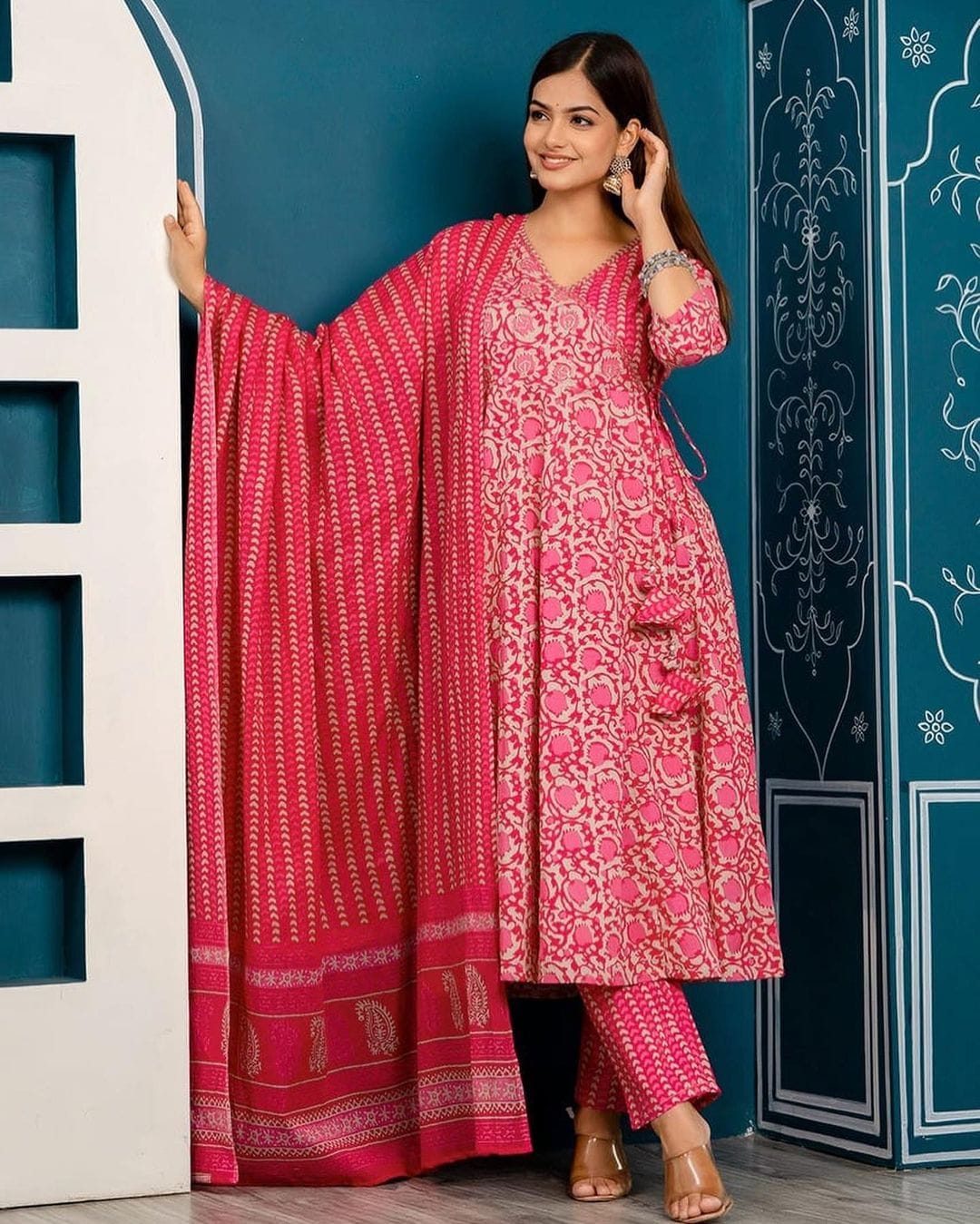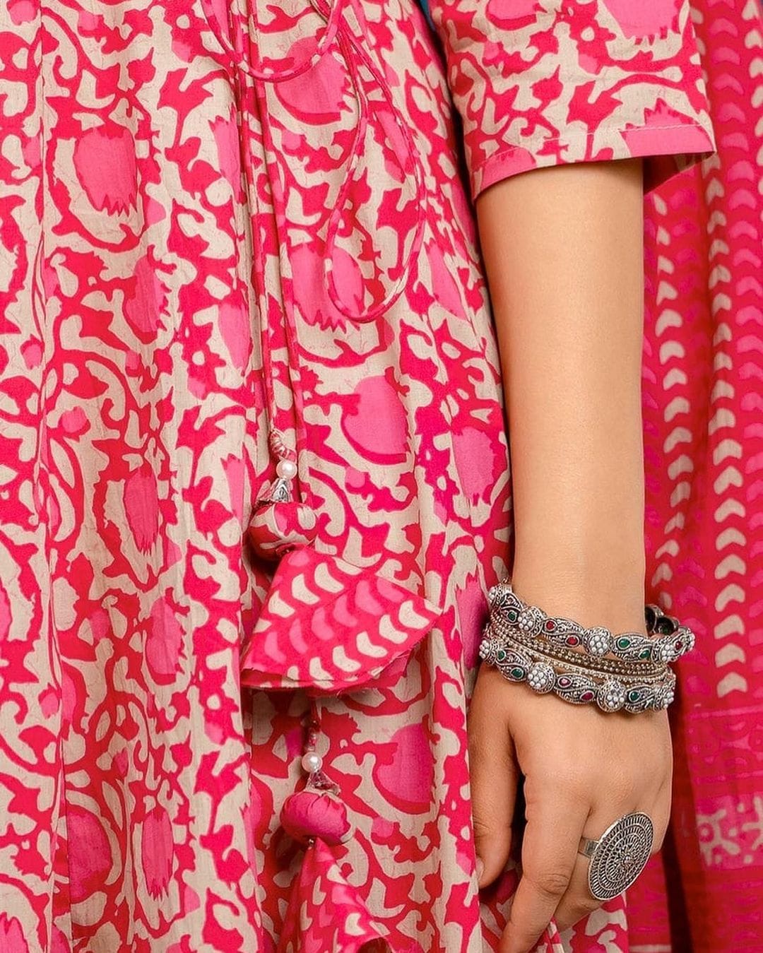 _New Angrakha kurta set with new style in saganeri block print_(SWRD27)
