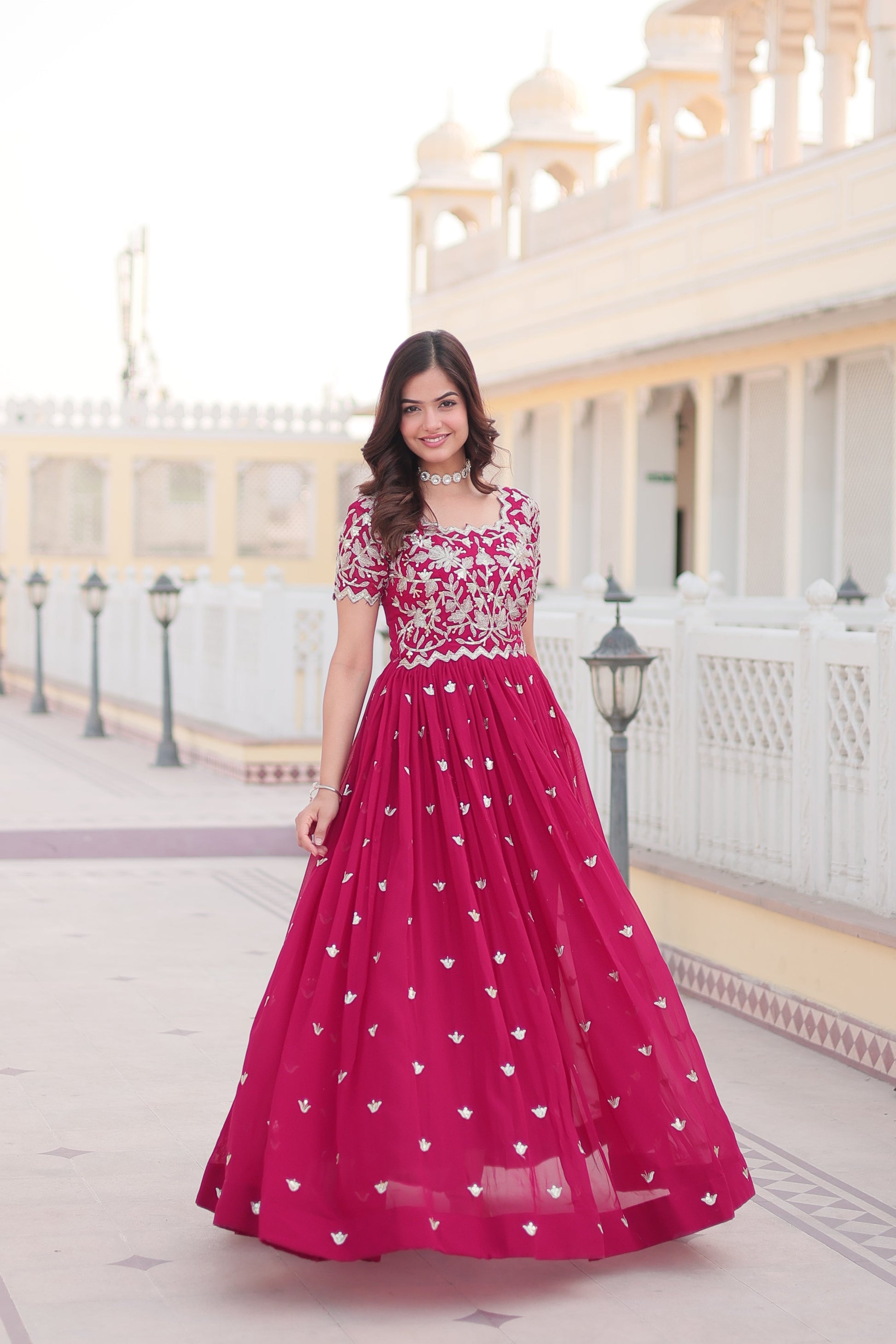 ๐๐ป FABRIC & WORK :- Faux Blooming With coding Sequins Embroidered workย