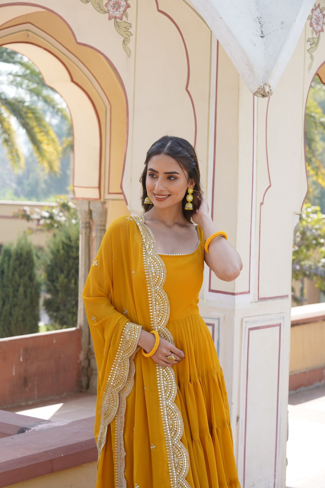 Tilton Desirable Women's gown Made With Faux Georgette Fabrics and Designer Embroidered Dupatta
