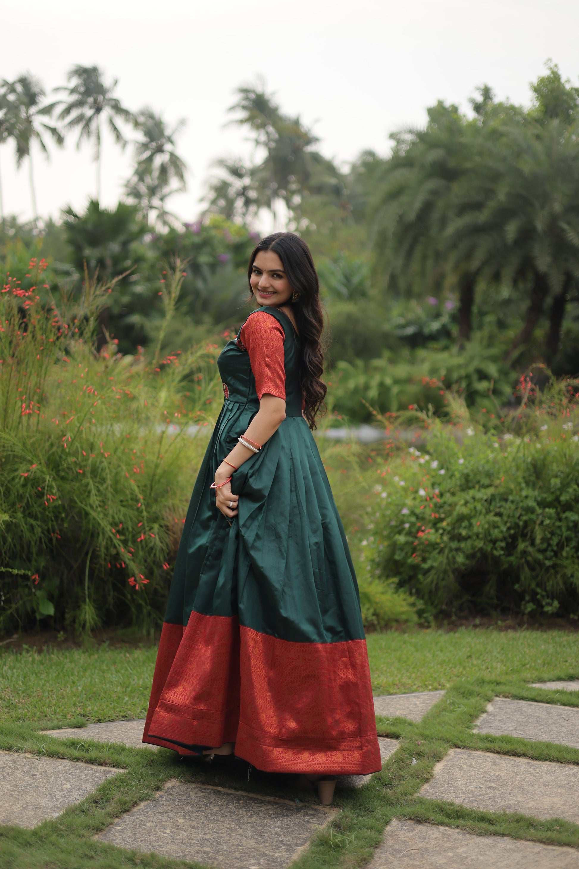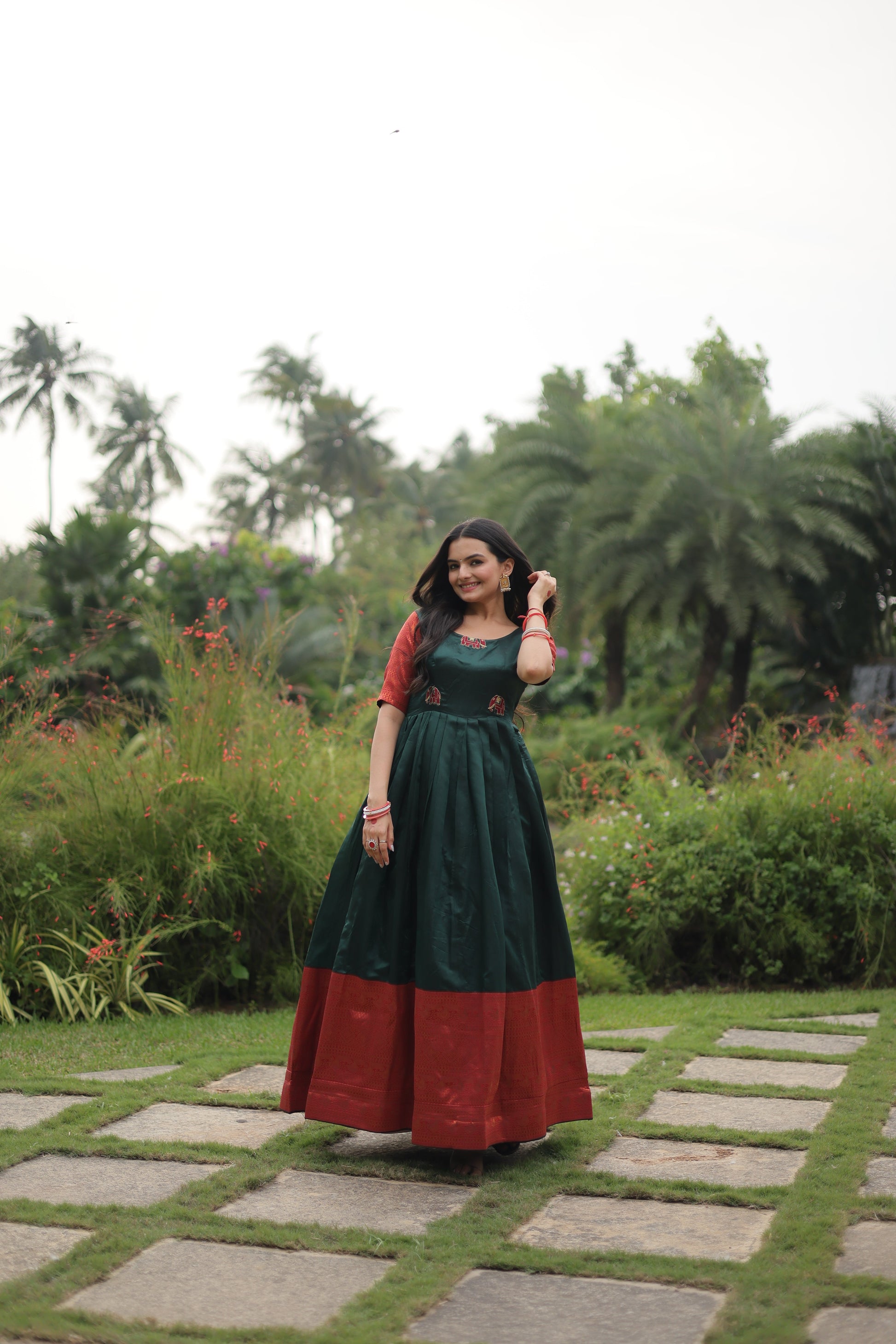 Silk Gown And simple weave with a sharp hand, Jacquard fabric is a highly textured fabric with patterns that are woven, rather than printed into the fabric, And it gives adorable loos to woman who deeply think in cloth what is to choose.