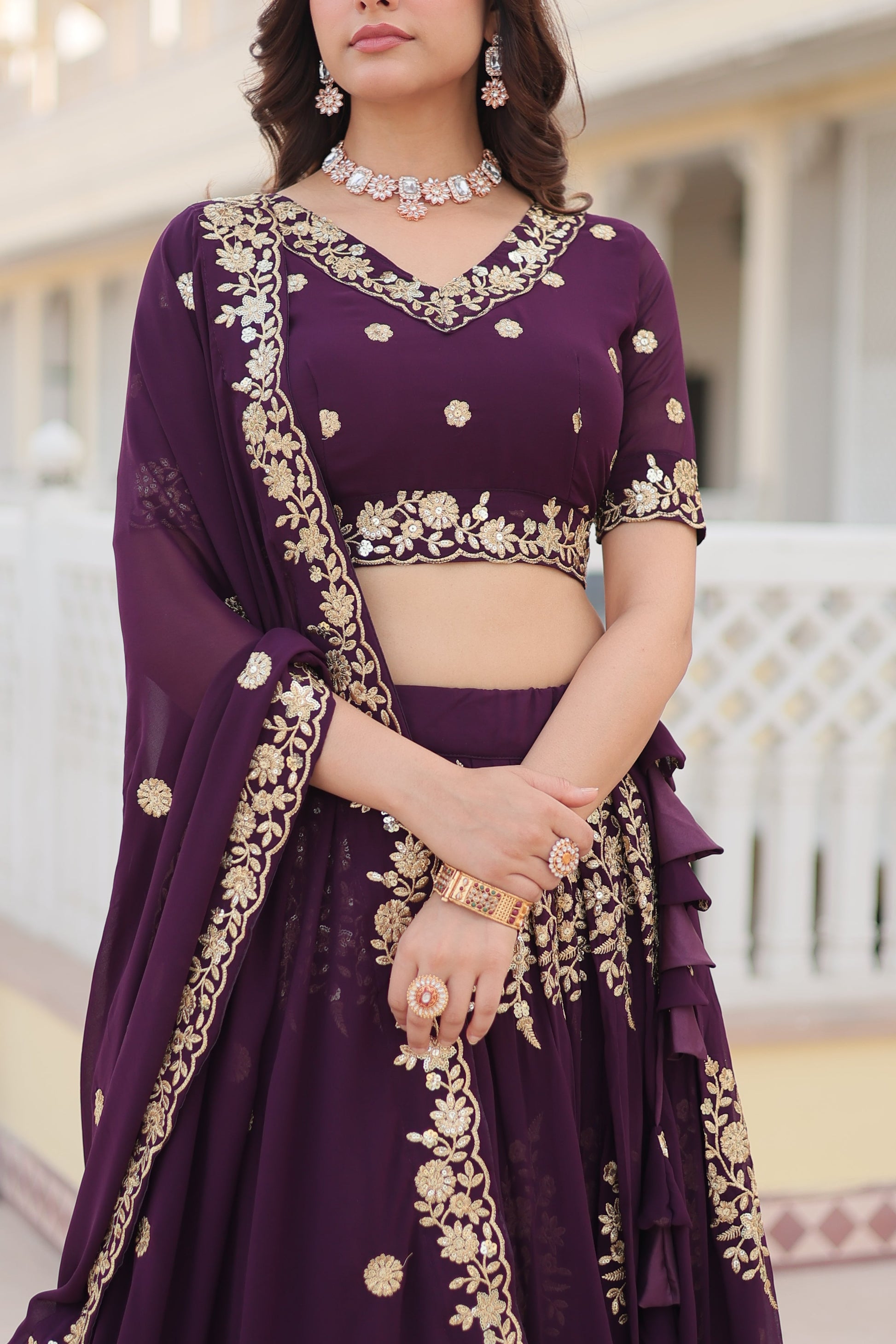 Fabric & Work :- Faux Blooming Georgette With Heavy Thread Sequins Embroidered work