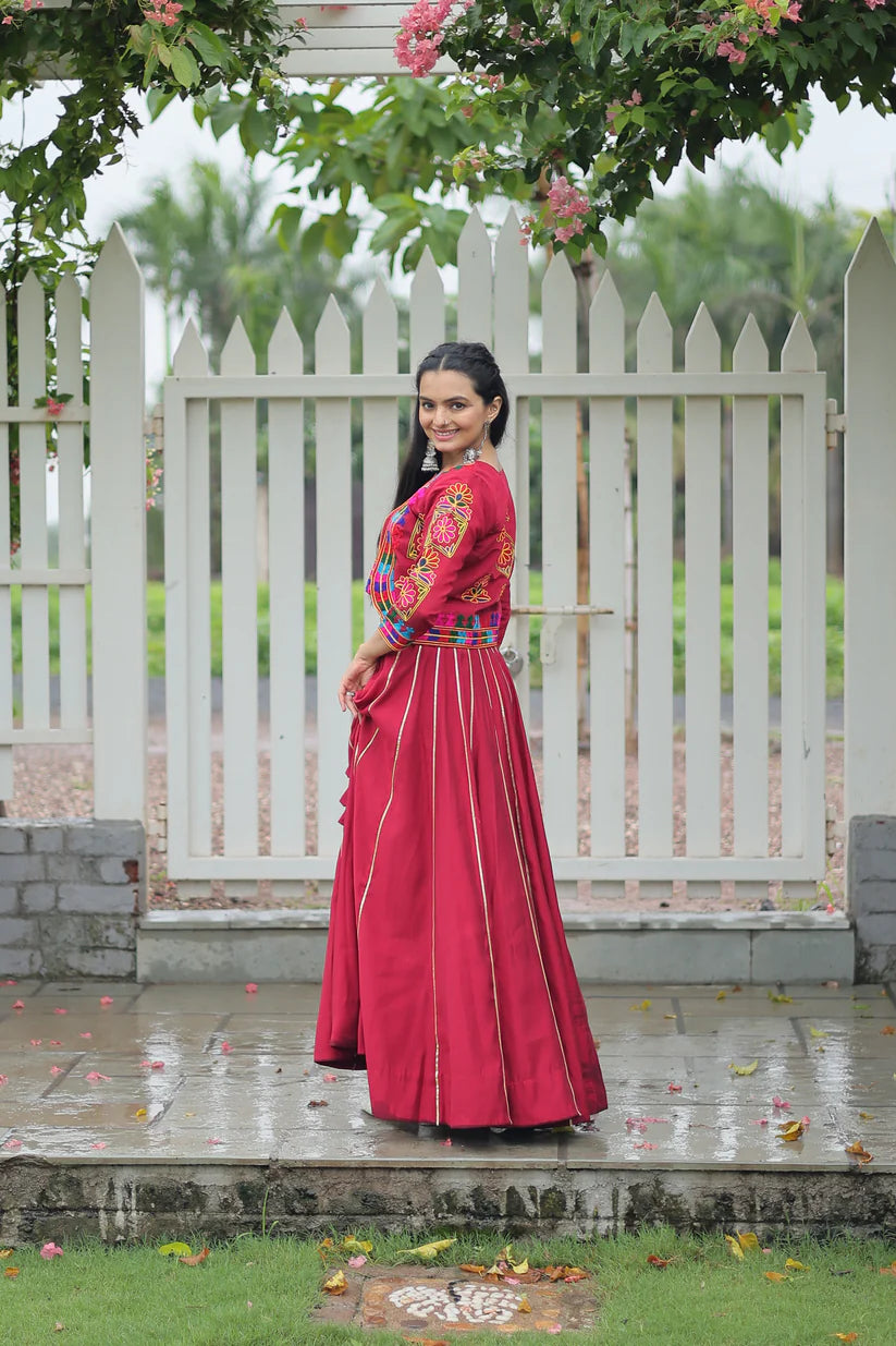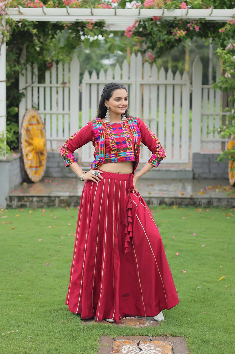 NAVRATRI SPECIAL GAMTHI EMNBROIDERED LEHENGA CHOLI WITH KOTI(WD184)