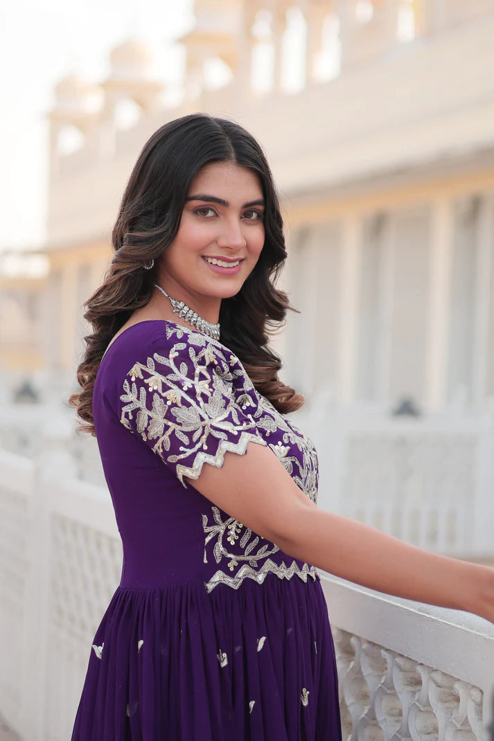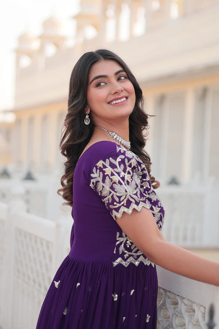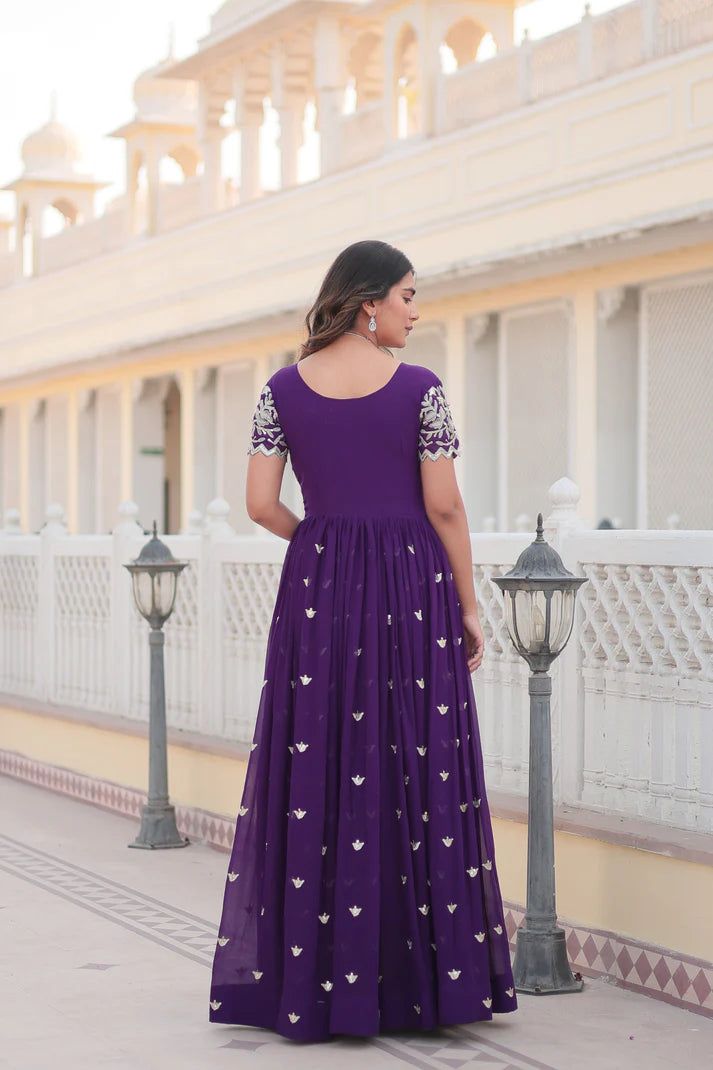 👉🏻 FABRIC & WORK :- Faux Blooming With coding Sequins Embroidered work